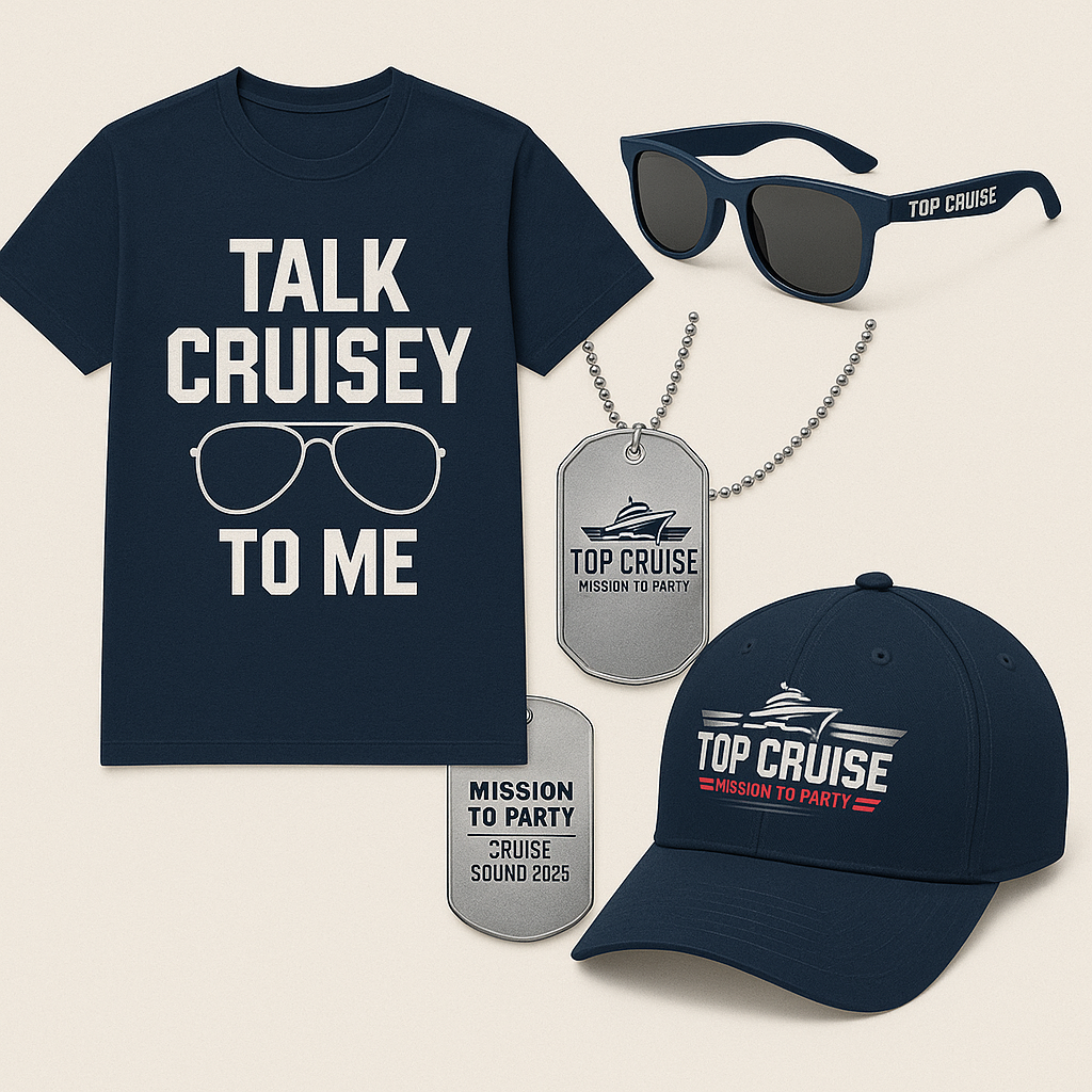 The mission wouldn't be complete without the gear. From the moment you board, you’ll receive a custom mission kit filled with swag to make you feel like Cruise himself—aviator sunglasses, “Risky Business” socks, a beach towel, and a classified itinerary folder. Throughout the cruise, collect exclusive keepsakes like “Mission to Party” dog tags, themed t-shirts, “Maverick & Goose” caps, or even spy gadgets and casino chips for winning challenges. Each item is not just a souvenir, but a badge of honor for the epic experience you just crushed.